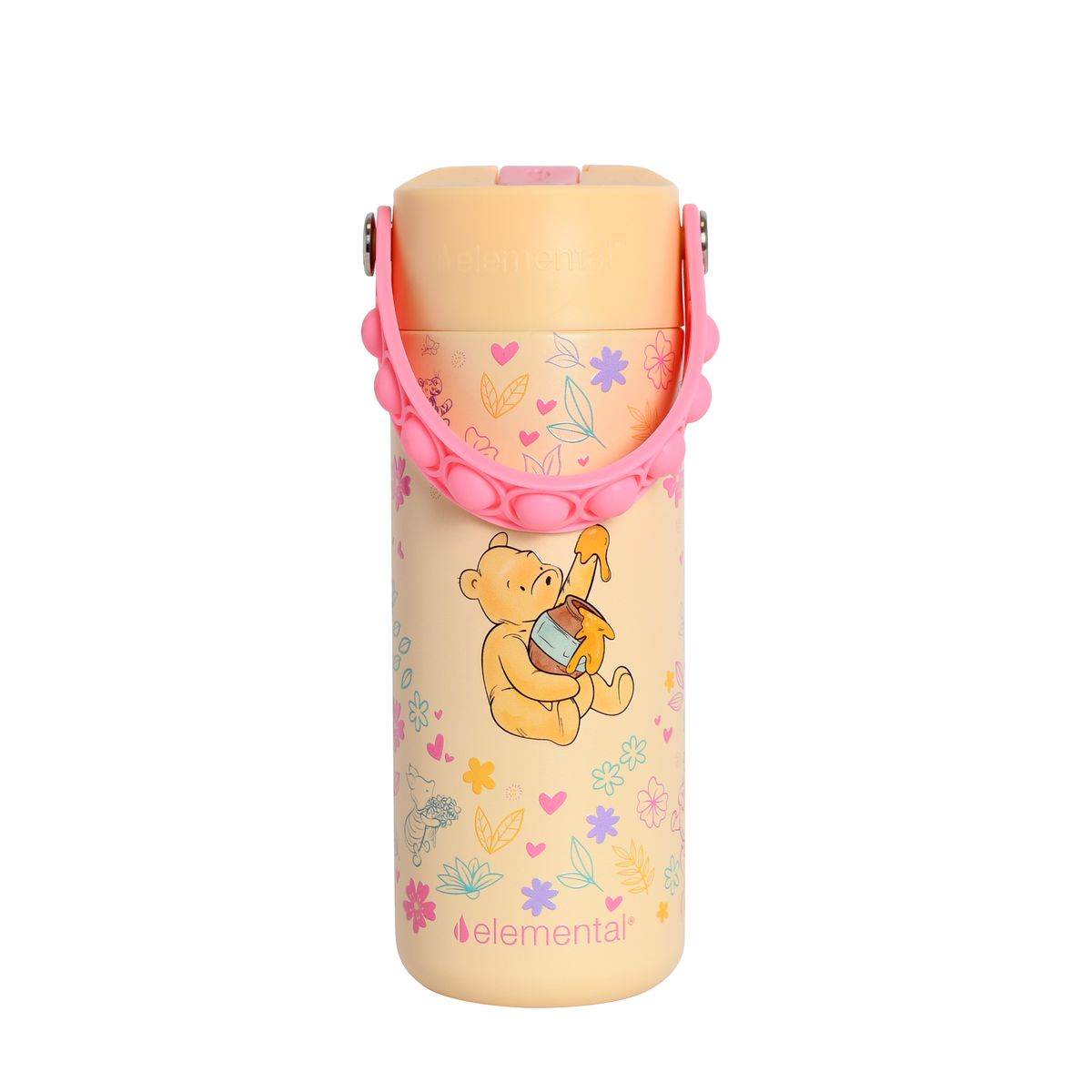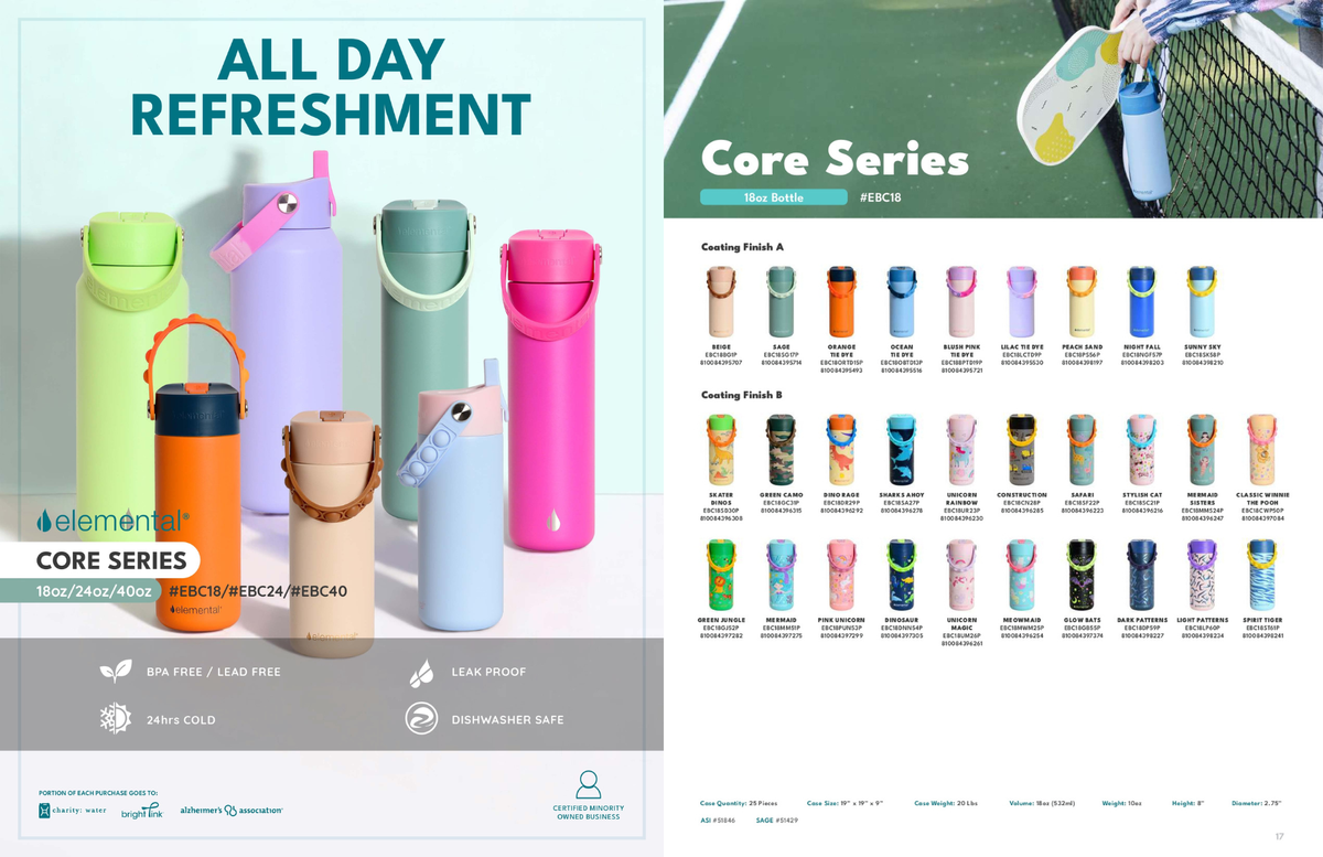 The Elemental Core 18 oz water bottle is the perfect solution for keeping your little one both hydrated and entertained. Designed with a fun pop fidget handle, it keeps kids engaged for hours while sipping away. The cheerful colors and simple, sleek design are sure to please, while the leakproof lid ensures no spills, even with the most active hands. Built to keep water cold for up to 24 hours, this bottle is just as reliable as it is fun. Trusted by parents and loved by kids!